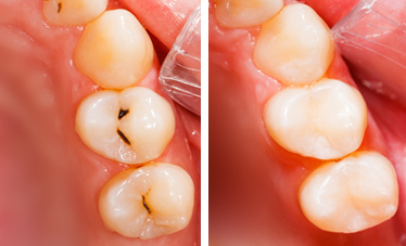So ist es möglich, kleine und mittelgroße kariöse Defekte äußerst schonend zu versorgen. Bei dieser modernen minimalinvasiven Füllungstechnik können Zähne natürlich und möglichst originalgetreu wieder aufgebaut werden.